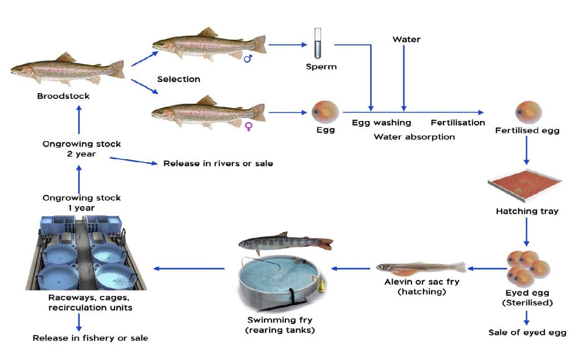 Fish are typically grown in open ponds or tanks with regular additions of clean water to keep the environment healthy.